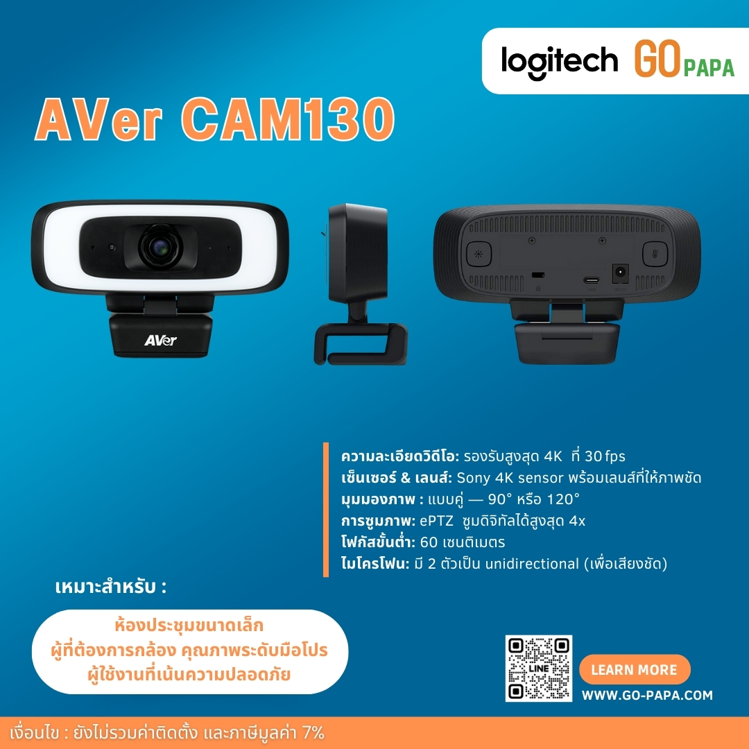 | – รีโมท (ใช้ร่วมกับ VB130 ได้) – สาย USB 2.0 Type-C to Type-A (5 ม.) – สาย USB 3.1 Extension Cable (10/20/30 ม.) |
