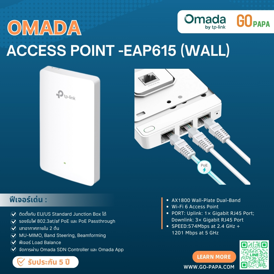 เป็นคนแรกที่จะวิจารณ์ “TP Link Omada Access point (EAP615) (Wall)”