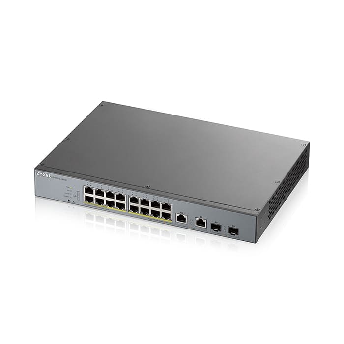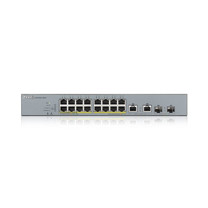 Zyxel GS1350-18HP Smart Managed PoE Switch 16 Port Gigabit , 2 SFP/RJ45, จ่ายไฟ 16 Port มาตรฐาน 802.3af/at 250W รองรับสาย Lan ได้สูงถึง 250 เมตร, VLAN 802.1q, STP